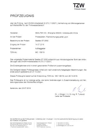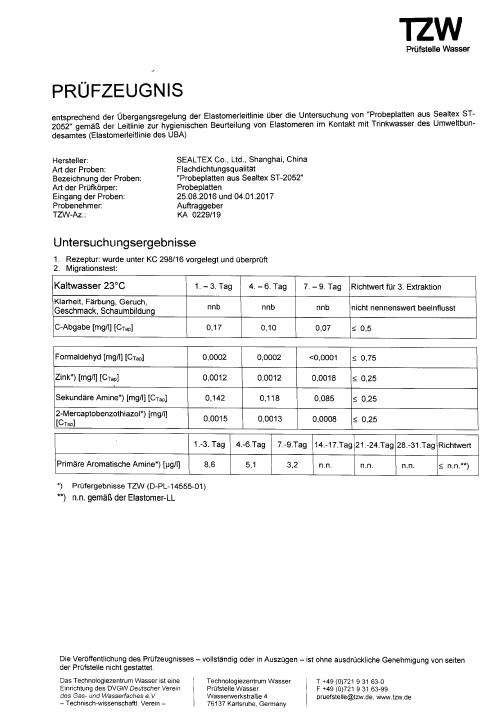 ST-2052無石棉墊片獲得飲用水認證KTW,W270